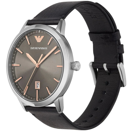 Emporio Armani Gray Dial Black Leather Strap Men's Watch - AR11277