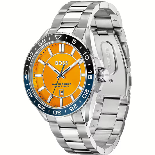 Hugo Boss Runner 3H Orange Dial Silver Steel Strap Men's Watch - 1514206