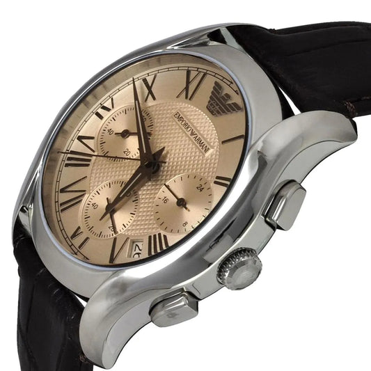 Emporio Armani Beige Dial Brown Leather Strap Ladies Watch - AR1790