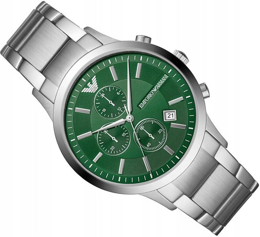 Emporio Armani Green Dial Stainless Steel Men's Chronograph Watch- AR11507
