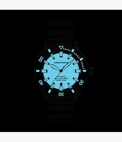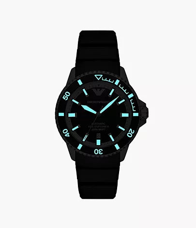 Emporio Armani Sea Explorer Automatic Full Lume Black Silicone Strap Men's Watch - AR60085
