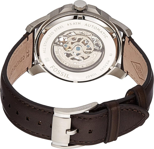 Fossil Grant Skeleton Dial Leather Strap Men's Mechanical Watch- ME3095