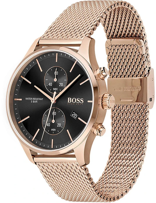 Hugo Boss ASSOCIATE Mesh Chain Rose Gold Black Dial Watch for Men- HB1513806