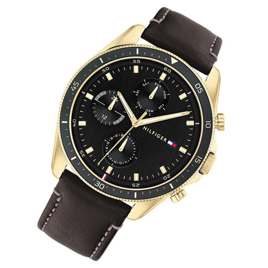 Tommy Hilfiger Black Leather Multi-function Men's Watch - 1791836