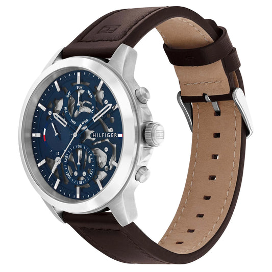 Tommy Hilfiger Skeleton Dial Leather Strap Men's Multi Function Watch- 1710476