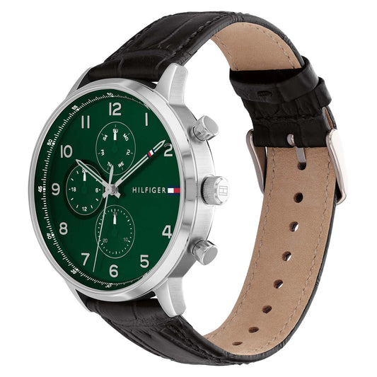 Tommy Hilfiger Leather Strap Green Dial Men's Chronograph Watch- 1791985