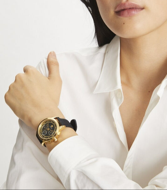 Tory Burch Navy with gold-tone accents Robinson Chronograph Ladies Watch- TBW1038