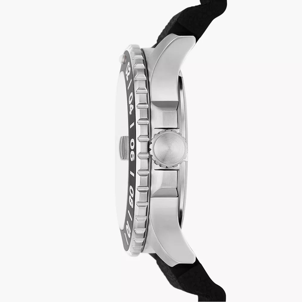 Fossil Blue GMT Black Dial Silicon Strap Men's Watch - FS6036