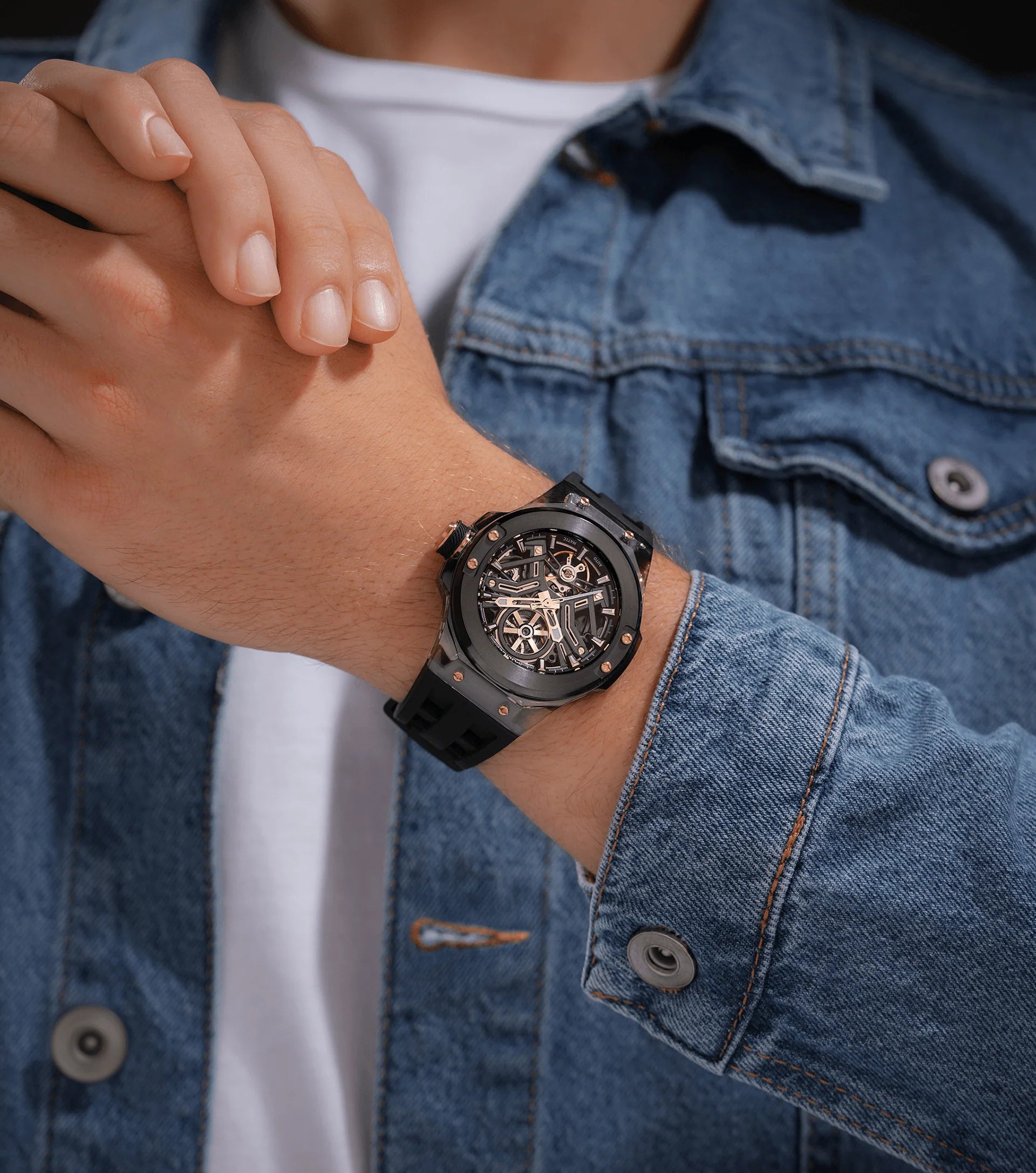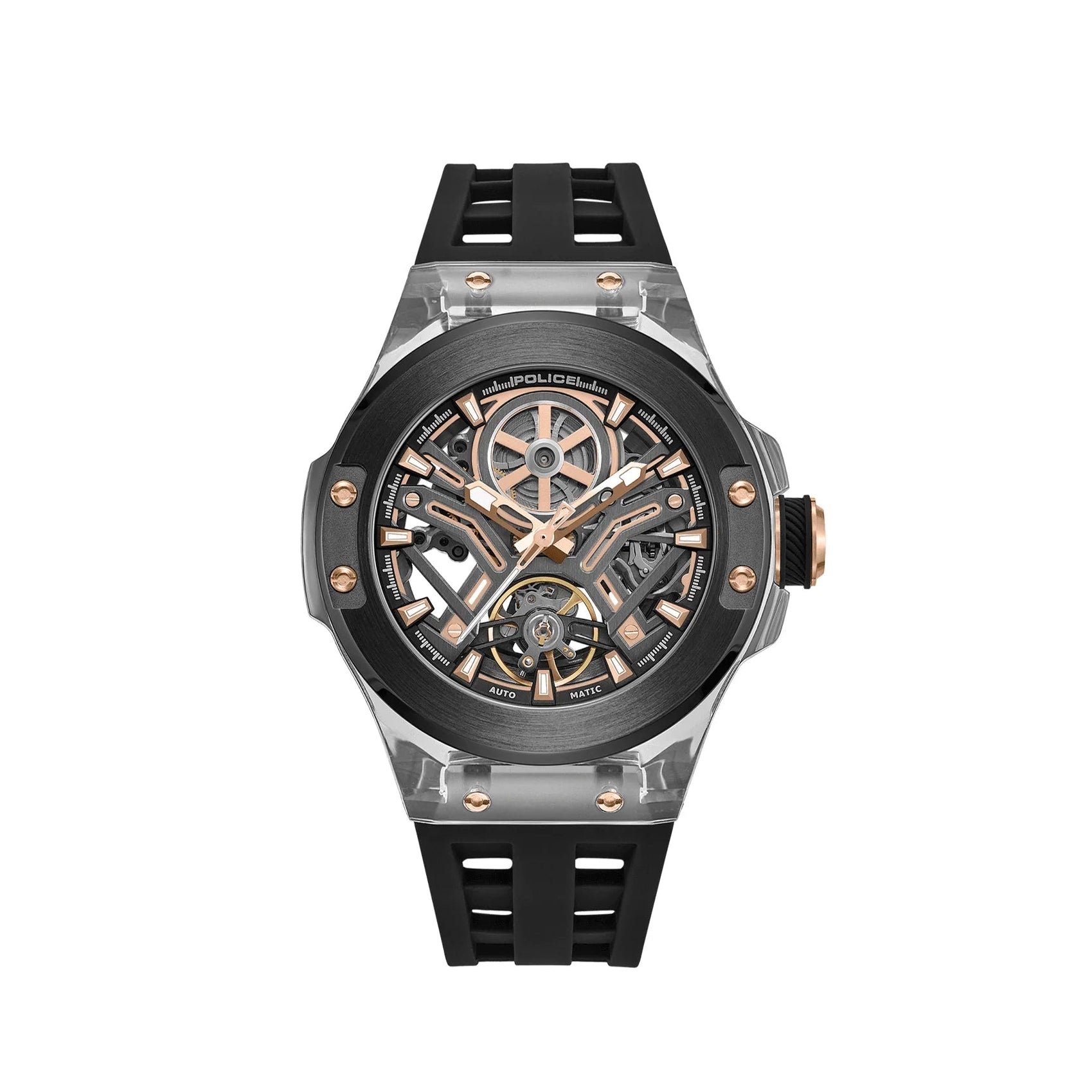 Police Cyclone Automatic Black Dial Silicon Strap Men's Watch - PEWGR0082202