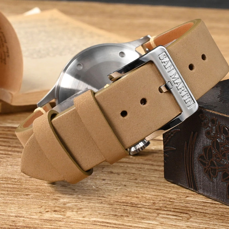 San Martin Grey Black Dial Leather Strap Men's Watch - SN0105-G