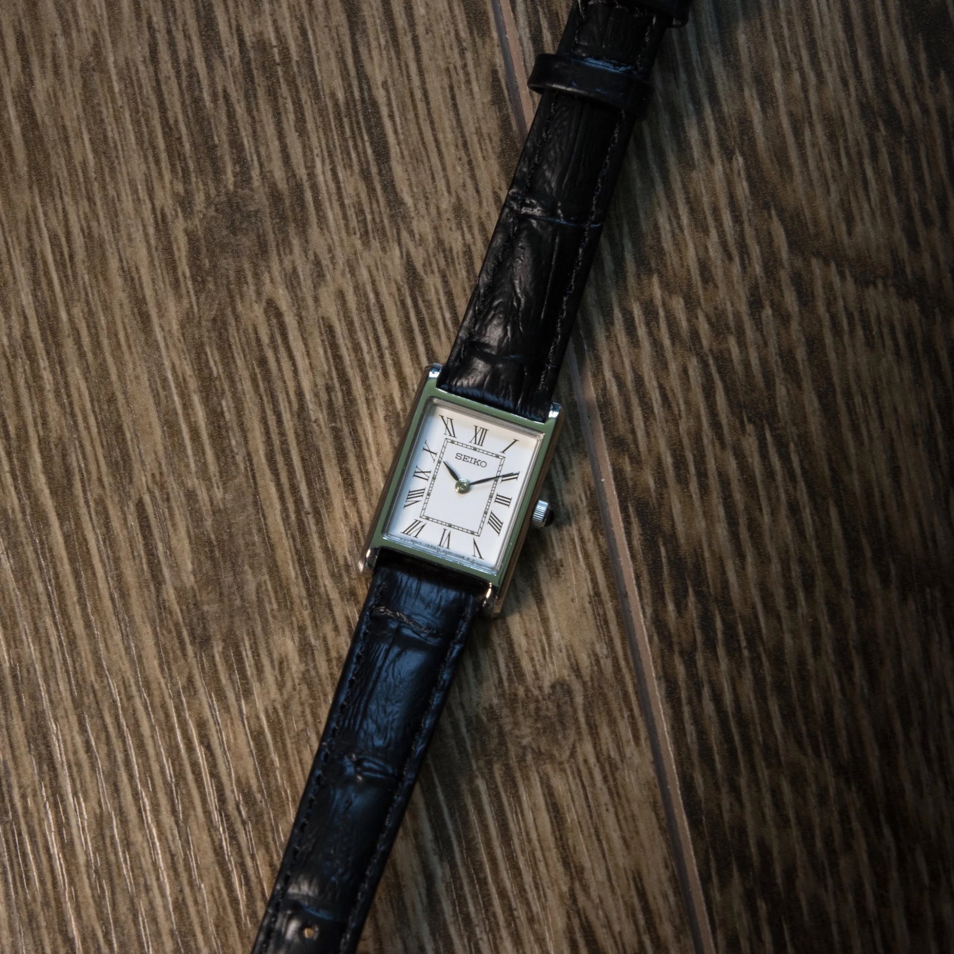 Seiko Tank White Dial Leather Strap Ladies Watch - SWR053P1