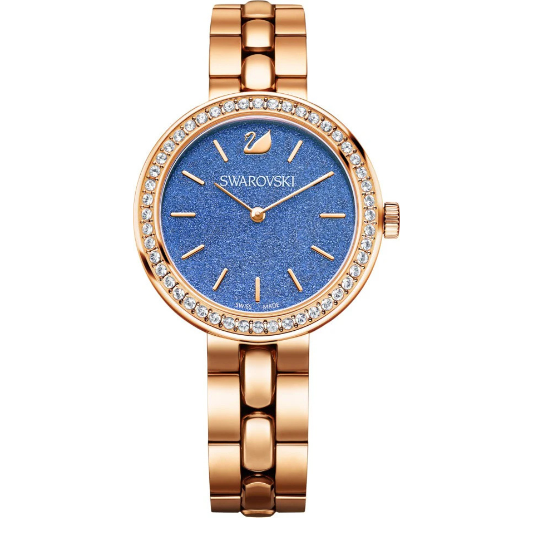 Swarovski Daytime Glittering Rose Gold Blue Dial Ladies Watch- 5182277