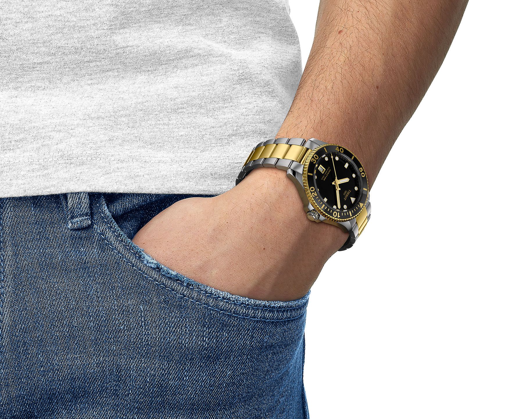 Tissot Seastar 1000 Black Dial 40mm Silver-Yellow Gold Tone Strap Men's Watch - T120.410.22.051.00